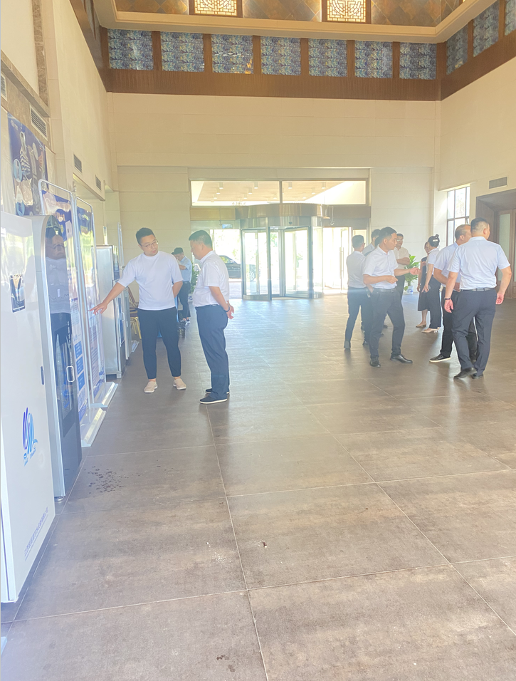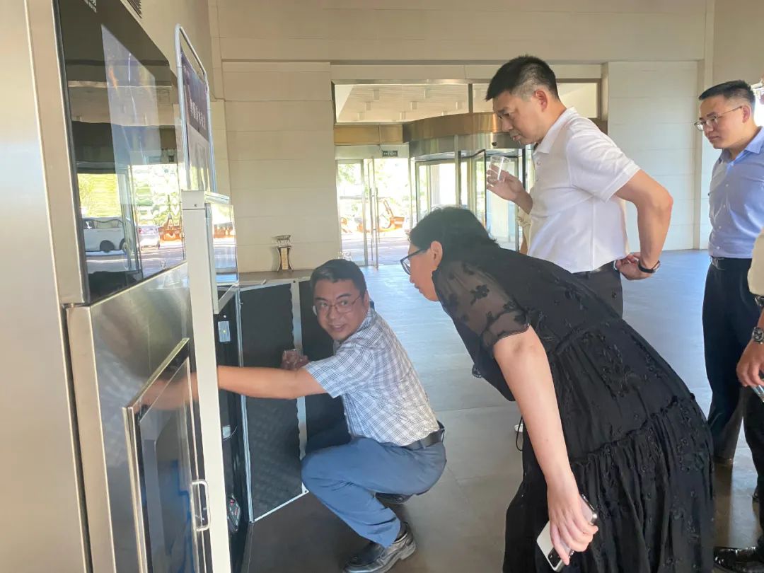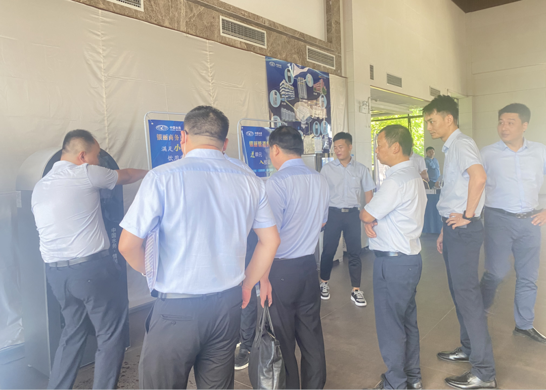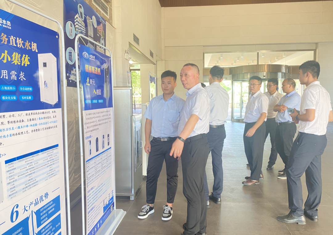本次新產品新模(mó)式在中國水務(wù)集團(tuán)2022年第一屆高級管理人員培訓班第一次實況展示,其(qí)展示形式主(zhǔ)要以商務直飲水機+管道直飲水機(jī)組合形式,同時在展示現場也邀(yāo)請集團(tuán)領導及各位高(gāo)管現場觀看取水(shuǐ)操作(zuò)與並品嚐直飲水口感,獲到集團領導(dǎo)“續杯”肯定。