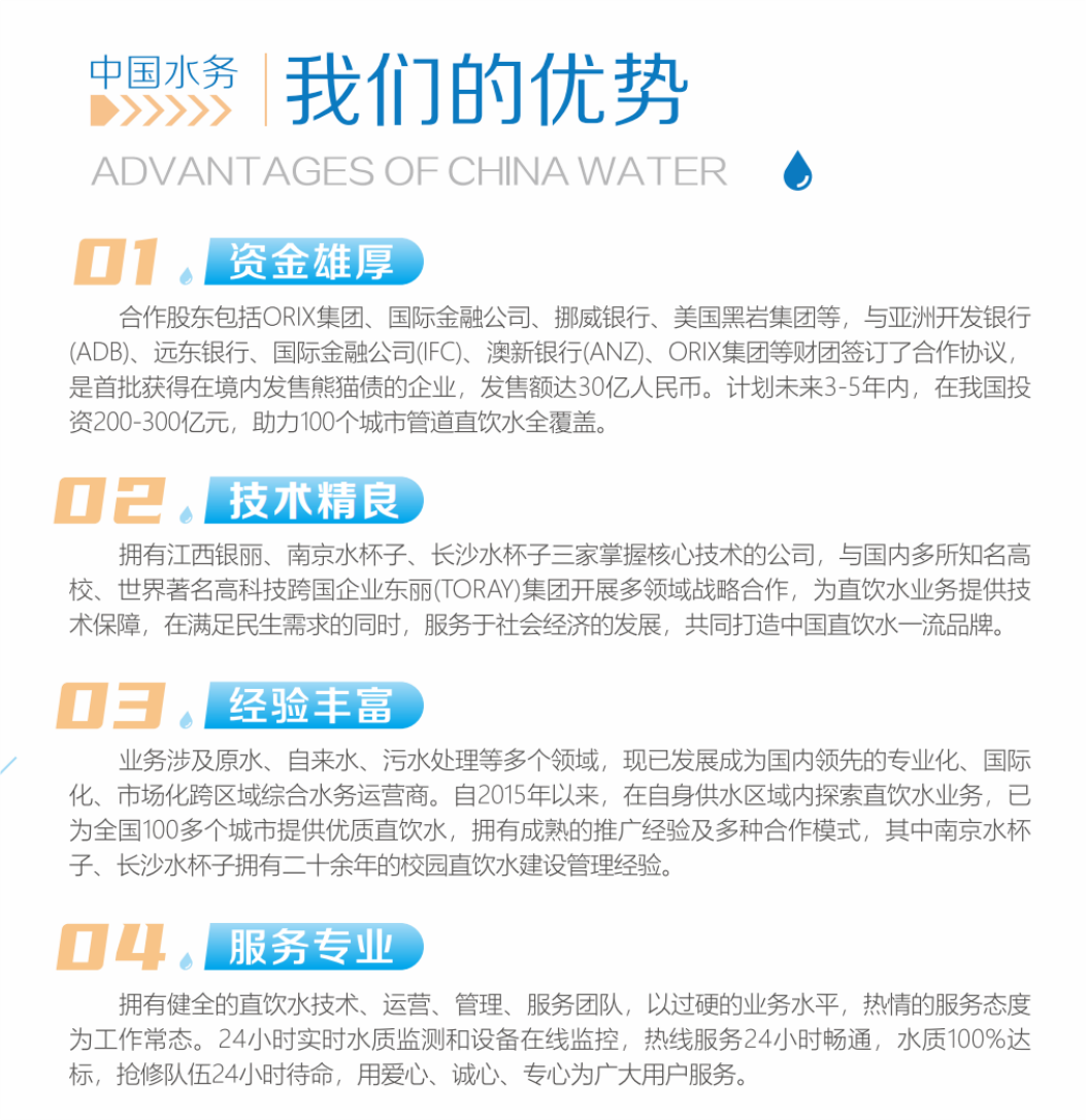 江西銀麗順應時代發展,響應集團文件指示,秉承中國水務“以(yǐ)水為本 達善社會”初心理念(niàn),將管道直飲水遍及更多的區域。公(gōng)司經過前期調研篩選,選擇省會南昌作為公司第一批宣講管道直飲水知識地區,篩選南昌市街區近百個小區後,將萬達星城西(xī)區作(zuò)為該地區管道直飲水入戶的破冰點。