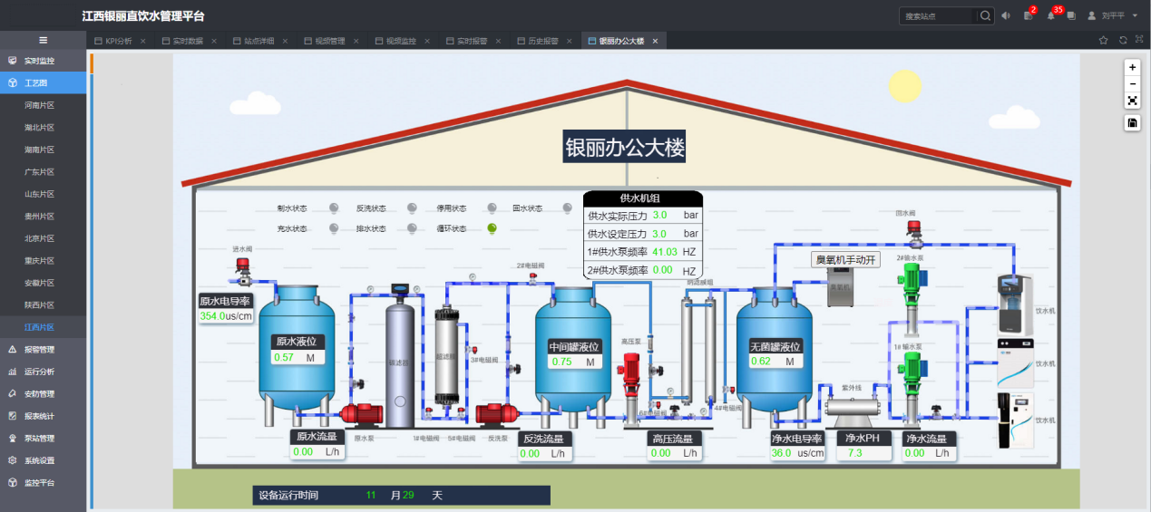 用戶可(kě)以通過直飲水設備智(zhì)能管理平台對製水量、水質等參數進行統計。同時也可(kě)以記錄用戶(hù)的用水情(qíng)況,例如用戶的用水時間、用水地點(diǎn)等。此外,該平台(tái)還可根(gēn)據用戶(hù)的用(yòng)水量,以及設備(bèi)的運(yùn)行狀態,自動生成各類報(bào)表, 對設備進行分析(xī)和預測,為用戶提(tí)供有價值的數據信息。在進行數據分析時,也(yě)可根據相應的表格進行對比。從而幫助用戶(hù)了解當前水質是否(fǒu)達標,以(yǐ)及是(shì)否需要對(duì)設備進行維護維修等。通過直飲水設備智能管理平台的數據統計和分析,可以幫助用戶及時發現問題、解決問題,從而有效提高直飲水設備的運行效率(lǜ)和(hé)使(shǐ)用壽命。