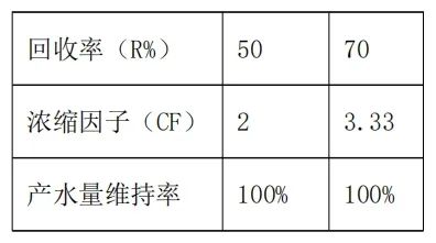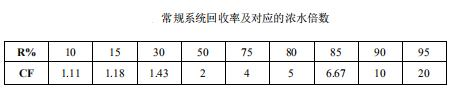 常規係統回收率(lǜ)及對(duì)應的濃水倍數請見下表: