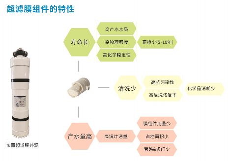 膜(mó)材(cái)料創新:采用東麗PVDF(聚偏氟乙烯)超濾(lǜ)膜,結(jié)合新一代熱致相分離法(New-TIPS)工藝,兼(jiān)具高強度、高親(qīn)水性與耐腐蝕性,透水通量提升15%-20%。
