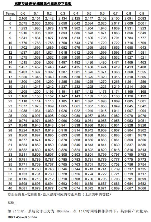 納濾膜溫度(dù)修(xiū)正係數(TCF)應用實例: