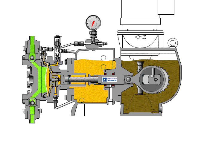 為了使活柱不與腐(fǔ)蝕性料液直接接觸,將氣缸腔(qiāng)體與液料用隔膜分開,實質也是往複泵的原理。