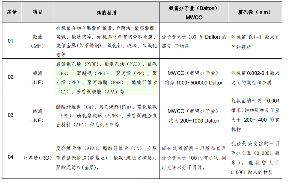 膜(mó)分離類型及分離特(tè)性對比