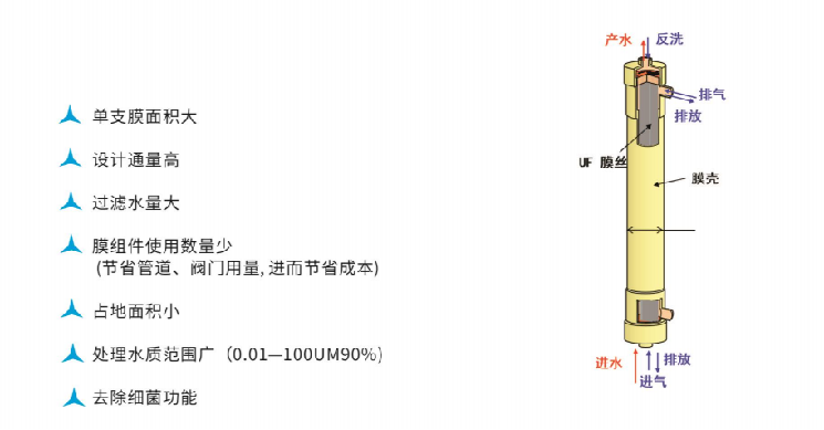 新一代飲用水淨化工藝應在提高處理效率、優化效果的同時,強調過程中無毒害物產生,能夠提高資源和能源利用率,減輕汙染負荷,改善環境質量。超濾技術能滿足新一代飲(yǐn)用水淨化工藝要求,去除飲用水中的“兩蟲”、病毒、細菌、藻類、水生生物,保障飲用水的安全性,已廣泛應用於美國(guó)、日本等發達國家的(de)城市(shì)水廠。